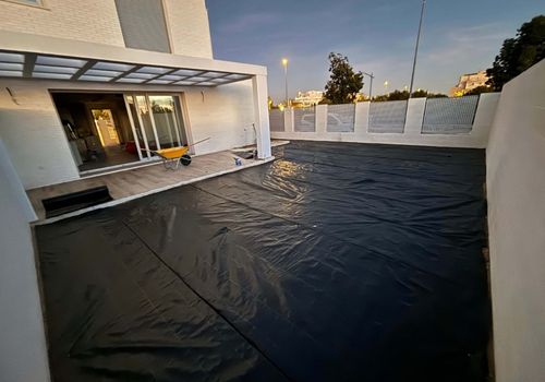El siguiente paso sería rellenar el terreno con áridos específicos para conseguir una compactación profesional.